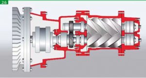 典型的油潤滑螺桿式空壓機(jī)機(jī)頭與驅(qū)動(dòng)